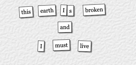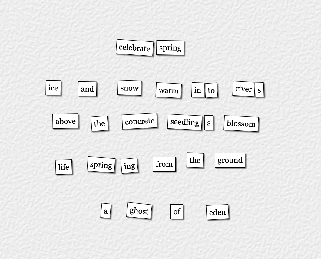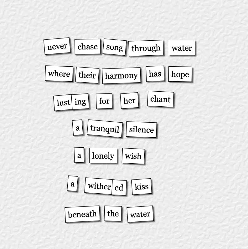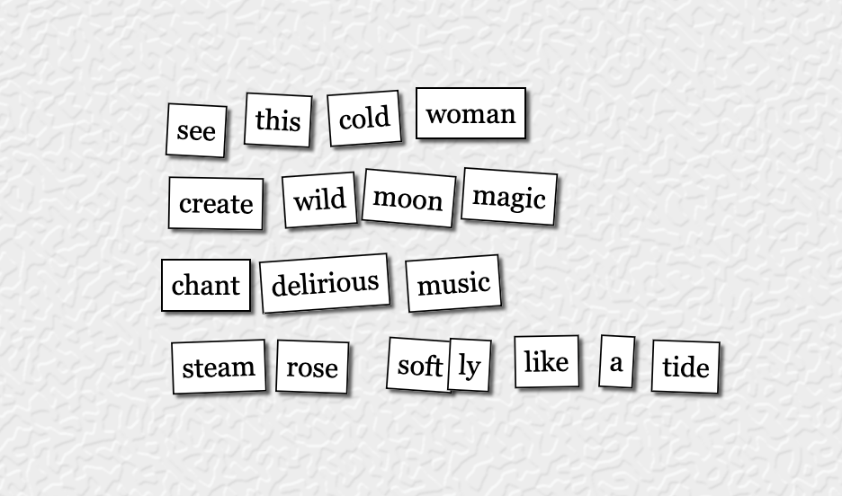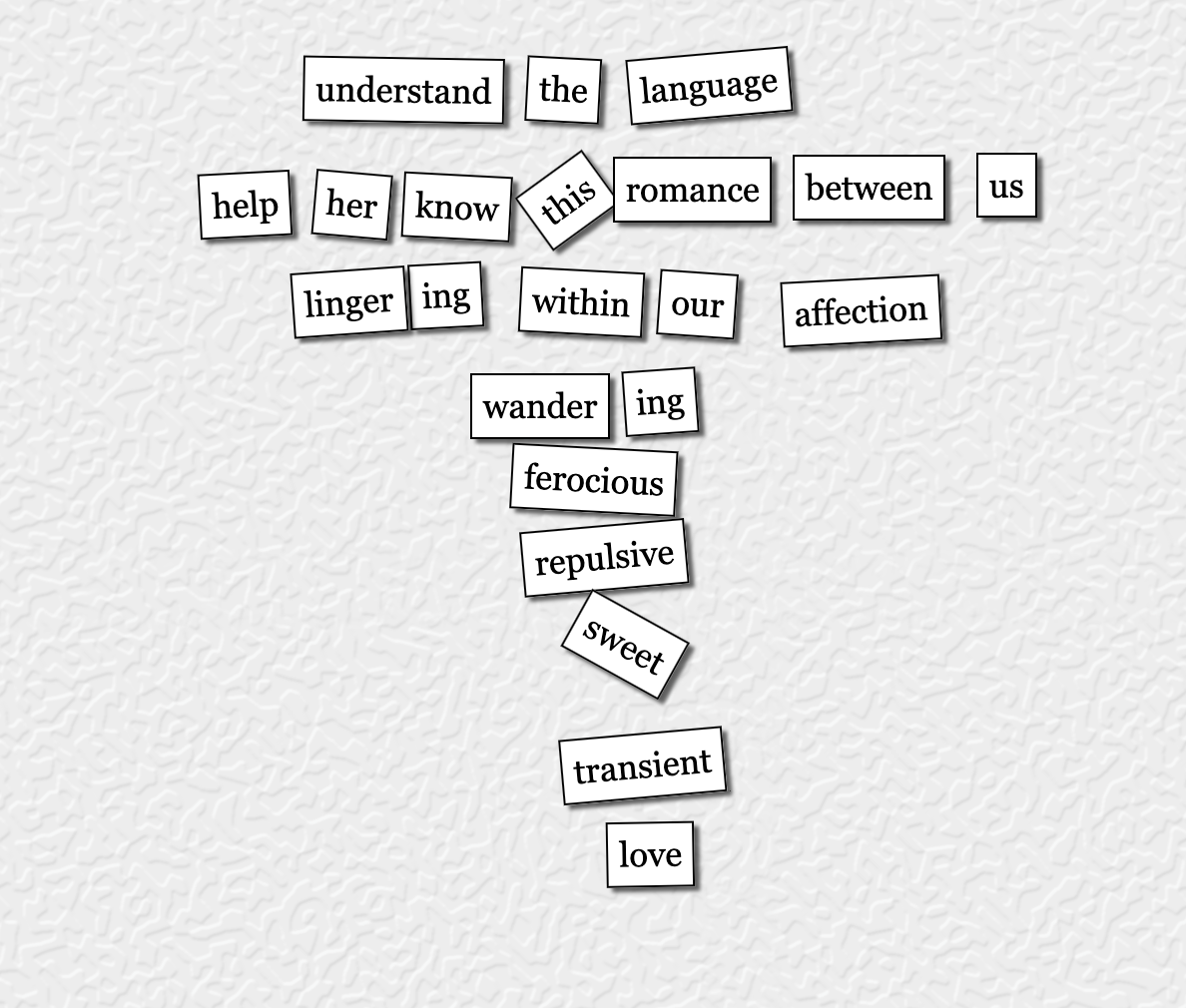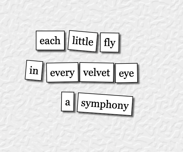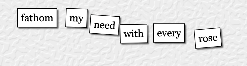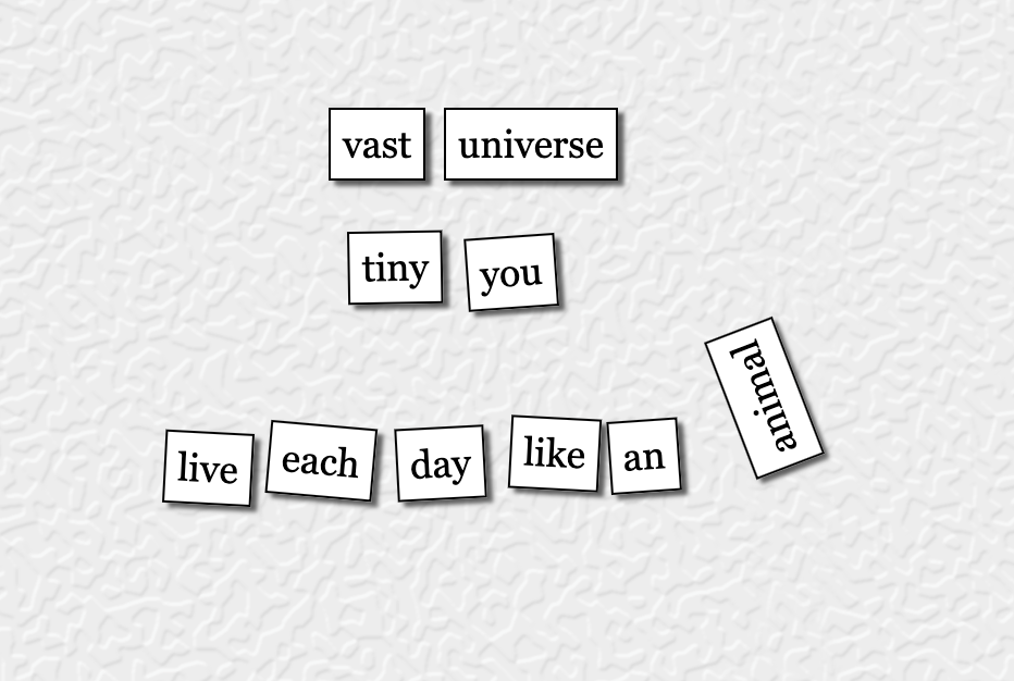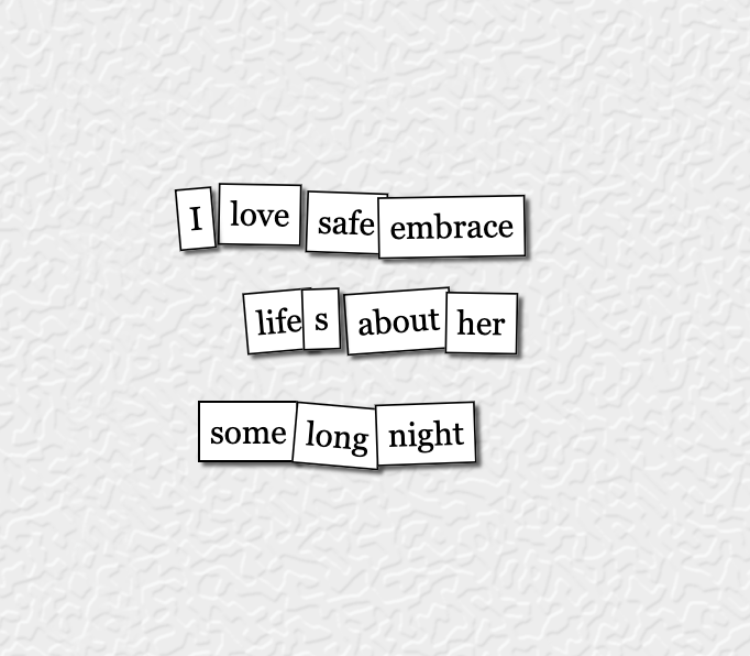 Here follows an unordered and incomplete selection of poems that I’ve found on Fridge Poem.