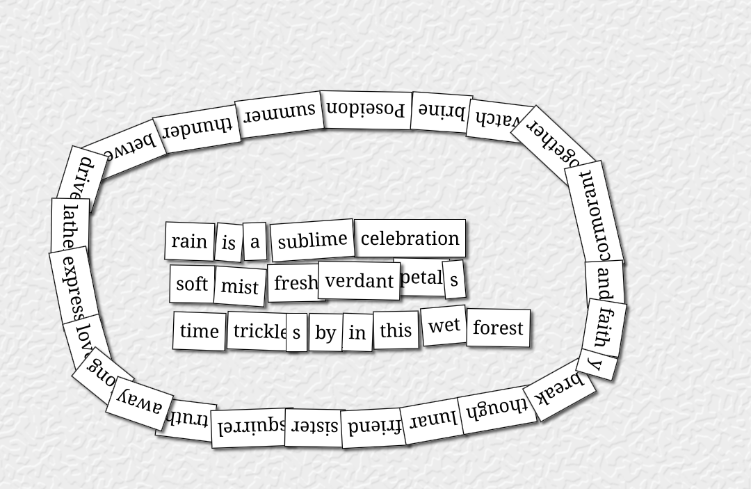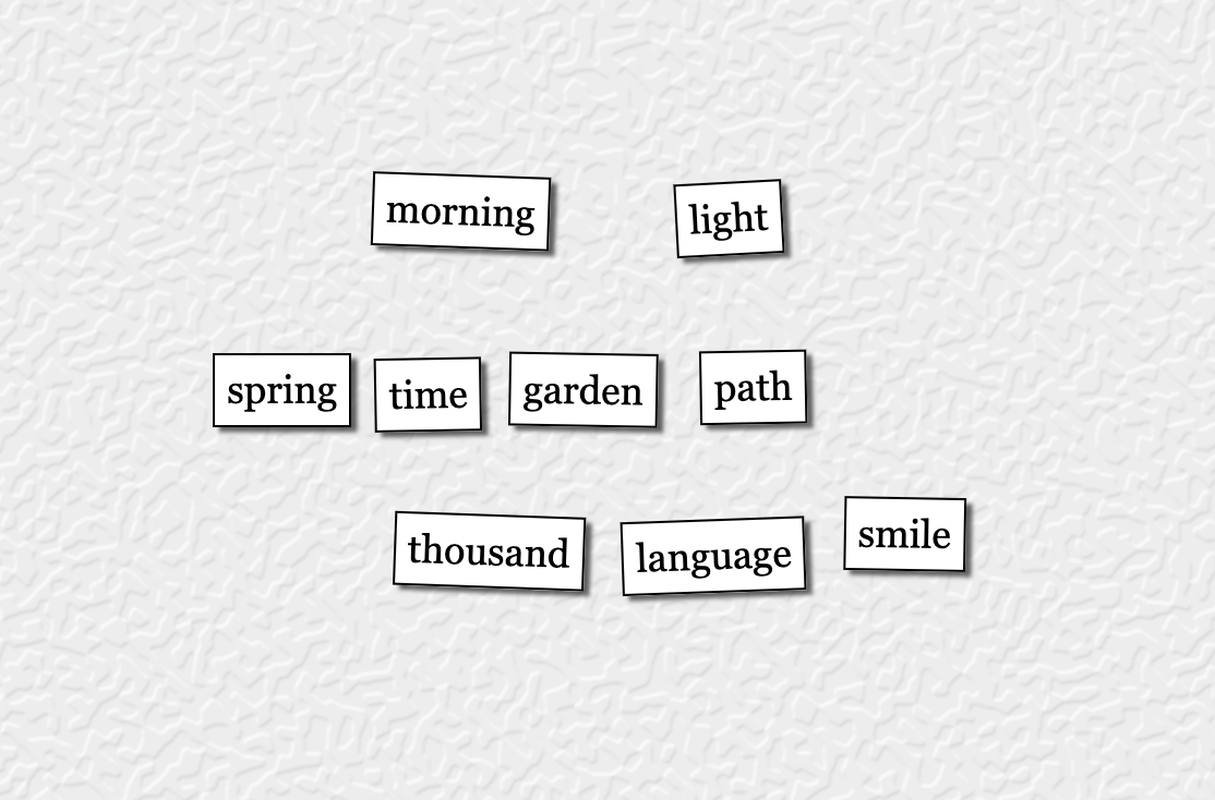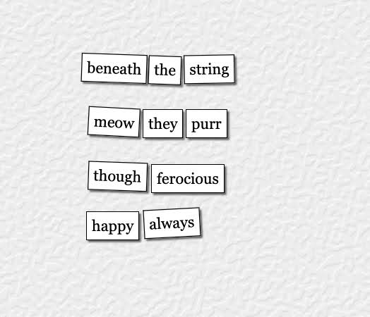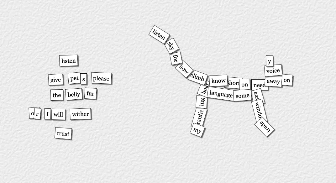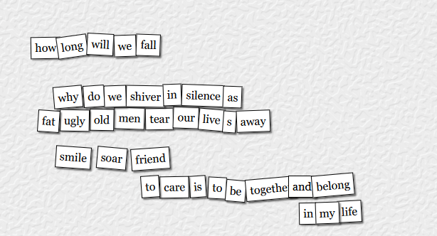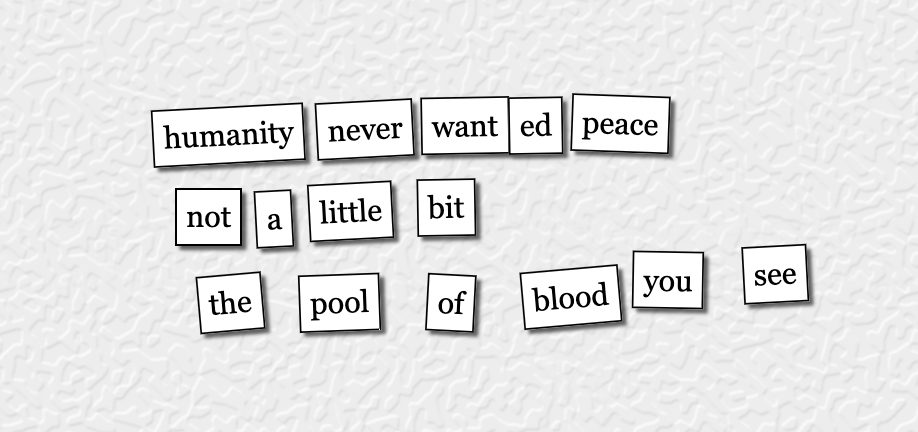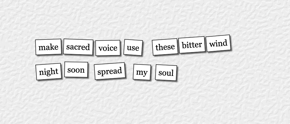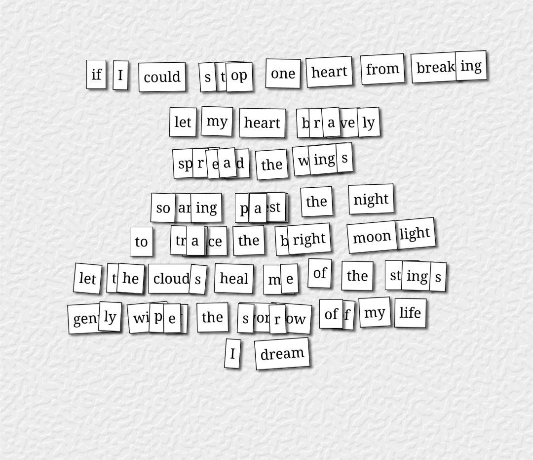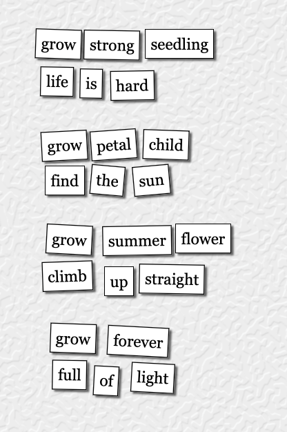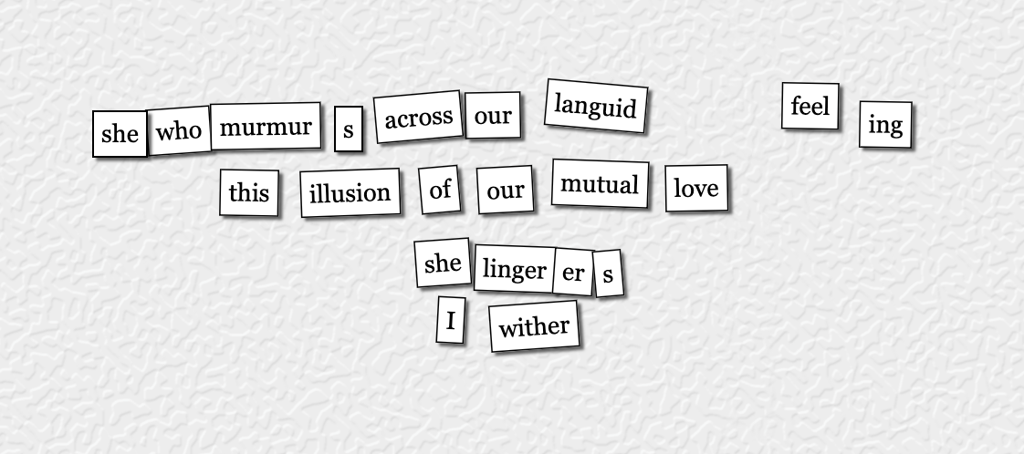 Here follows an unordered and incomplete selection of poems that I’ve found on Fridge Poem.