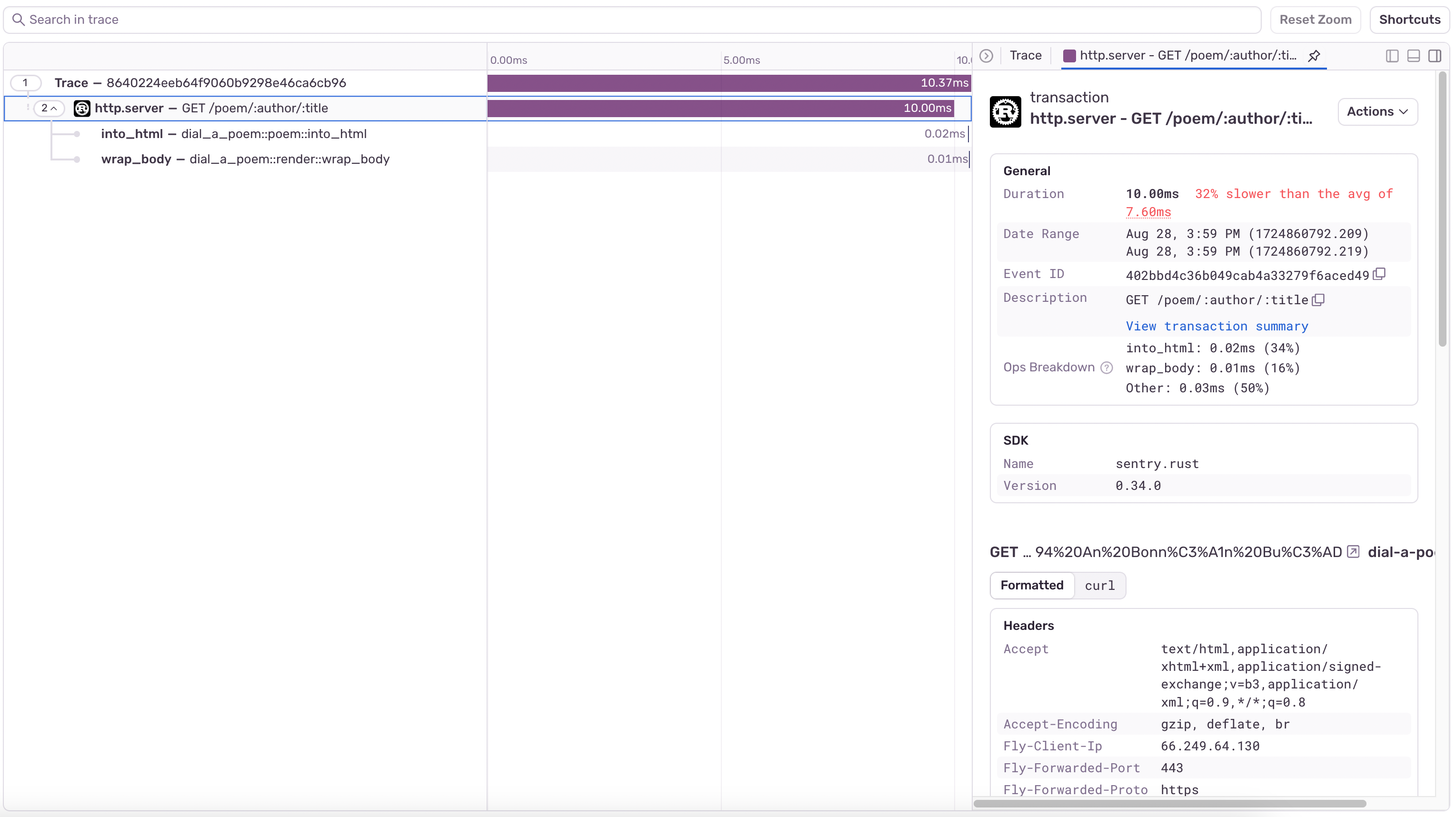- Went a little overboard for such a small and lightly trafficked website by setting up metrics and monitoring using sentry.io and Grafana, including full request tracing and automated alerting for crashes and performance regressions: (sentry)